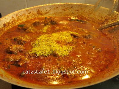 Masak dengan api kecil sampai kuah kering. Catz tak suka kering sgt, so basah-basah sket coz sedap cicah dgn nasik impit especially tang sampah-sampah kelapa tuh.